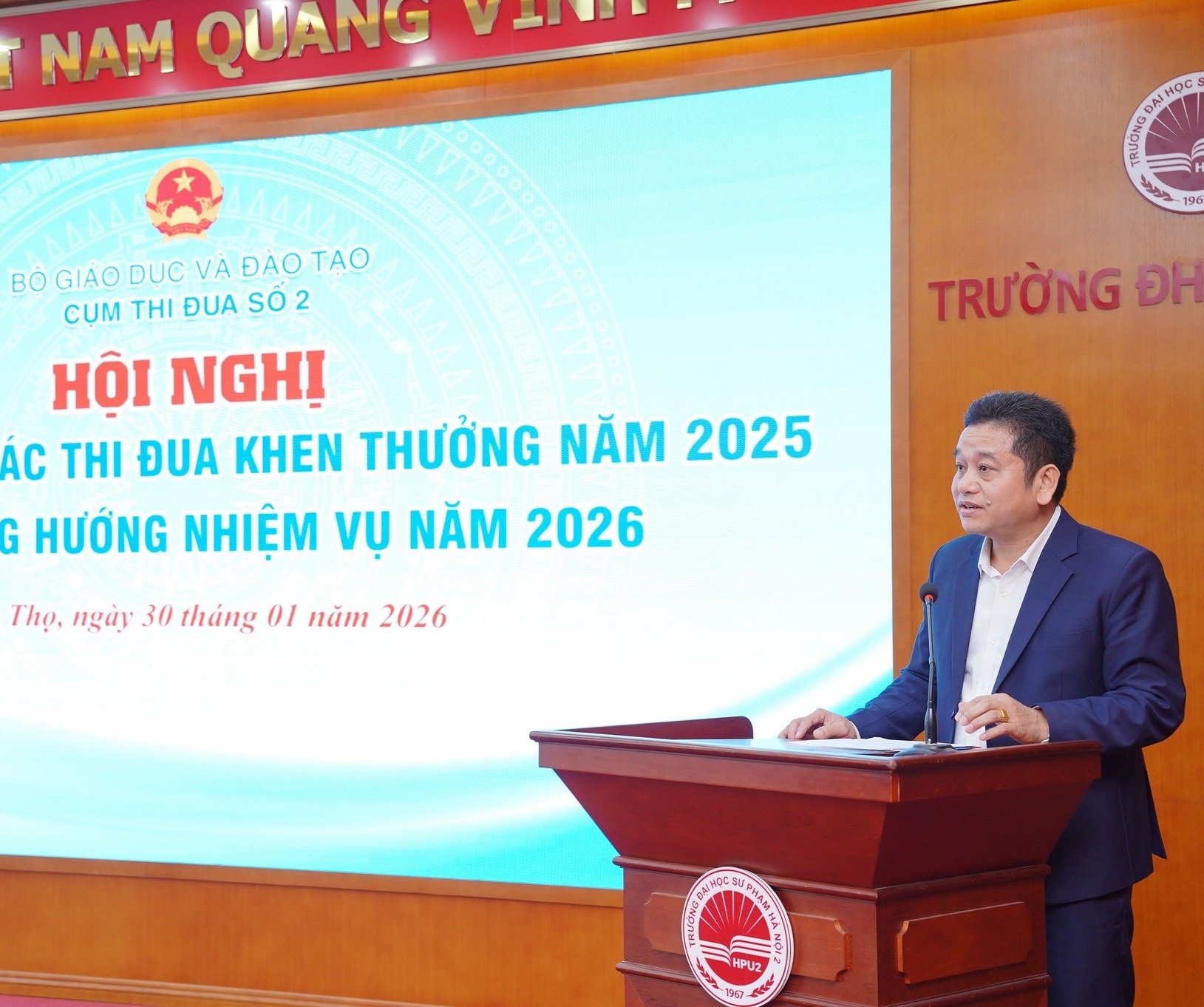 Sáng 30/01/2026, Trường Đại học Sư phạm Kỹ thuật Vinh tham dự Hội nghị tổng kết công tác thi đua, khen thưởng năm 2025 và triển khai phương hướng nhiệm vụ năm 2026 của Cụm thi đua số 2, do Trường Đại học Sư phạm Hà Nội 2 đăng cai tổ chức, với sự tham dự và chỉ đạo của đại diện Bộ Giáo dục và Đào tạo.