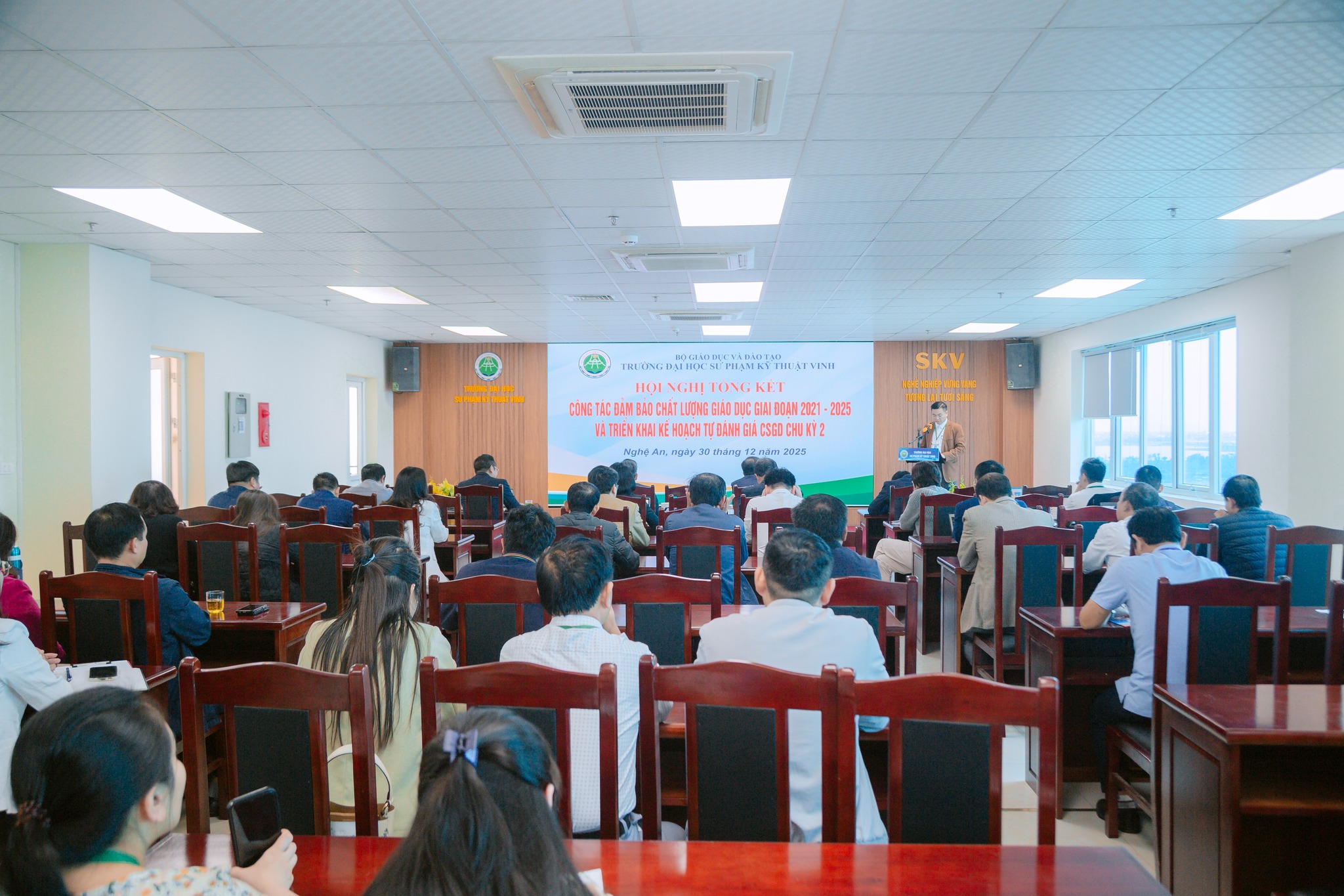 Chiều ngày 30/12/2025, Trường Đại học Sư phạm Kỹ thuật Vinh đã tổ chức Hội nghị tổng kết hoạt động Đảm bảo chất lượng (ĐBCL) giai đoạn 2021–2025 và triển khai kế hoạch tự đánh giá cơ sở giáo dục (CSGD) chu kỳ 2.