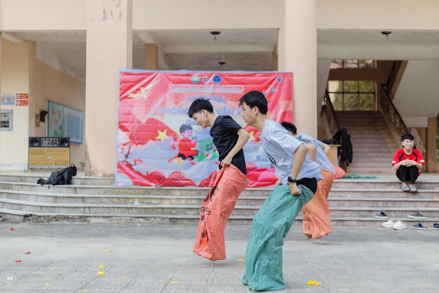 Chương trình thu hút sự tham gia hào hứng của sinh viên với nhiều trò chơi dân gian như nhảy bao bố, kéo co, chuyền bóng và các hoạt động vận động theo nhóm. Thông qua các hoạt động này, sinh viên có cơ hội rèn luyện kỹ năng hợp tác, giao tiếp và hỗ trợ lẫn nhau. Việc tham gia các trải nghiệm chung góp phần tạo cảm giác gắn kết, giúp sinh viên cảm thấy được chia sẻ và nâng cao sự thoải mái về mặt tinh thần trong môi trường học tập.